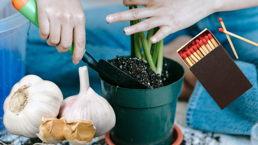 - Cesnak: polovicu strúčika cesnaku zapichnite do substrátu. Odpudzuje dospelé mušky a zabraňuje im tak v kladení vajíčok. Podľa skúseností je najúčinnejší domáci cesnak, nie z dovozu, napríklad čínsky.
