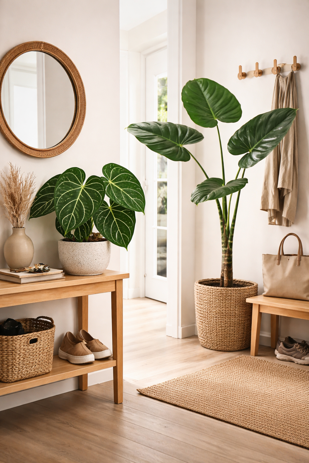 Vstupný priestor je prvým miestom, ktoré vás víta po návrate domov. Práve tu má zeleň silu vytvoriť okamžitý vizuálny dojem. Hodí sa sem rastlina s výraznými listami, ktorá zvládne aj slabšie osvetlenie a nevyžaduje každodennú starostlivosť.