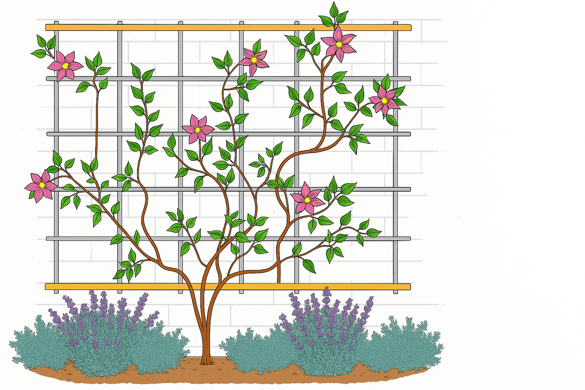 Plamienok potrebuje spoľahlivú oporu, po ktorej sa môže šplhať. Najvhodnejšie sú drevené mreže s primeranými rozstupmi. „Jedna z najväčších chýb je, keď ľudia vysadia plamienok bez pripravenej opory. Po roku je už neskoro, lebo výhonky sú popretkávané,“ upozorňuje Martina. Opora by mala byť umiestnená aspoň osem centimetrov od múru, aby mala rastlina dostatok vzduchu. Po výsadbe je dobré hlavné výhonky vyviazať do tvaru vejára – tak sa rast rovnomerne rozloží.
