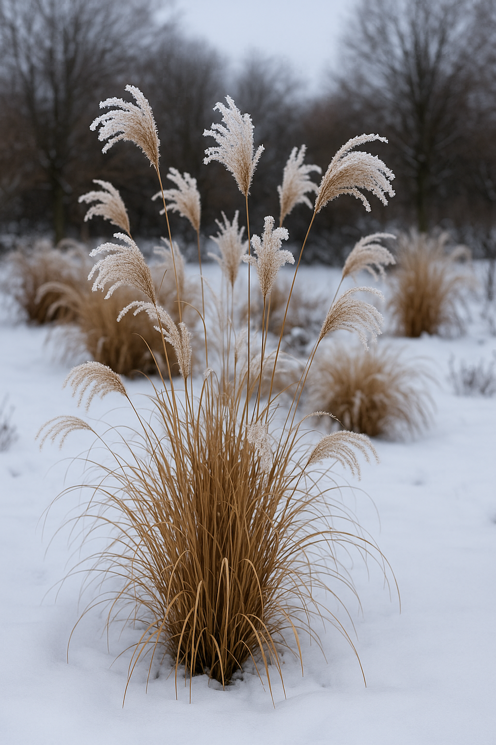 Počas zimy sa oplatí občas skontrolovať, či sa na trsoch nehromadí sneh alebo ľad. Ak sa pod ich váhou začnú steblá lámať, jemne ich uvoľnite.