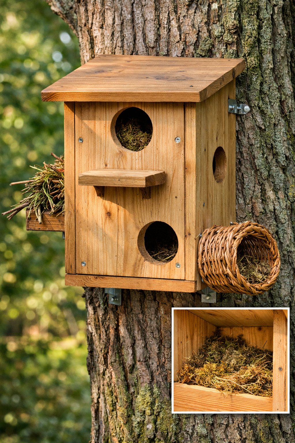- Nezabudnite na viacero vstupných otvorov. Ideálne sú dva až tri s priemerom približne sedem centimetrov. Jeden z nich by mal smerovať bližšie ku kmeňu stromu a mierne nadol, aby bol chránený pred dažďom a vetrom.